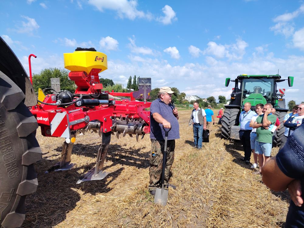Licznie zgromadzeni na warsztatach uczestnicy mieli okazję wysłuchać prelekcji Profesora UPP dr hab. Tomasza Piechoty, obejrzeć pokaz pracy maszyn do uprawy bezorkowej, a także zapoznać się z ofertą firm parnterskich dotyczacą uprawy bezorkowej czy siewu mieszanek międzyplonowych.